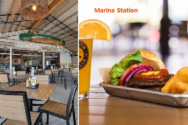 5 /5 Bailee Copeland: Absolutely beautiful place with delicious food!! My favorites are the sweet chili shrimp app & the Tropical Salmon!! The restaurant is right on the water and you can even drive your boat straight up to it & park it there while you eat. They have fun things always going on like karaoke and live bands playing. Highly recommend checking Marina Station out!